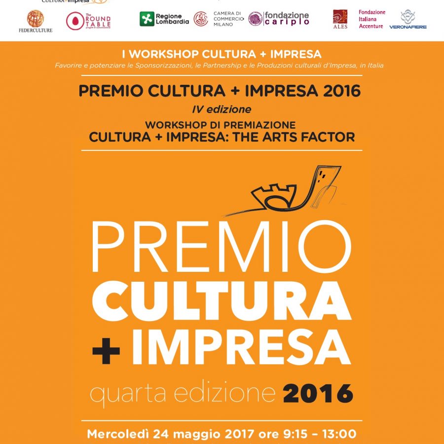 Il Premio CULTURA+IMPRESA è l’iniziativa, promossa dal Comitato non profit CULTURA + IMPRESA, formato da Federculture e da The Round Table in collaborazione con Fondazione Italiana Accenture e ALES, che ha l’obiettivo di premiare i migliori progetti di Sponsorizzazione e Partnership culturale, di Produzione culturale d’Impresa, e di applicazione dell’Art Bonus, valorizzando presenza e ruolo sia dell’operatore culturale che dell’impresa che investe in cultura. Favorire relazioni proficue tra il ‘Sistema Cultura’ e il ‘Sistema Impresa’ assicura un contributo strategico allo sviluppo culturale, sociale ed economico del nostro Paese e dei nostri Territori.